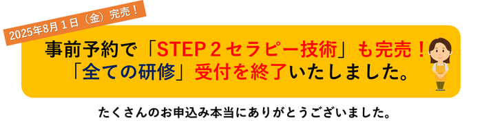 この研修をご受講頂くと(STEP2)セラピー技術の研修をご受講頂けます。ご興味のある方は是非、次のSTEPもご検討ください。
